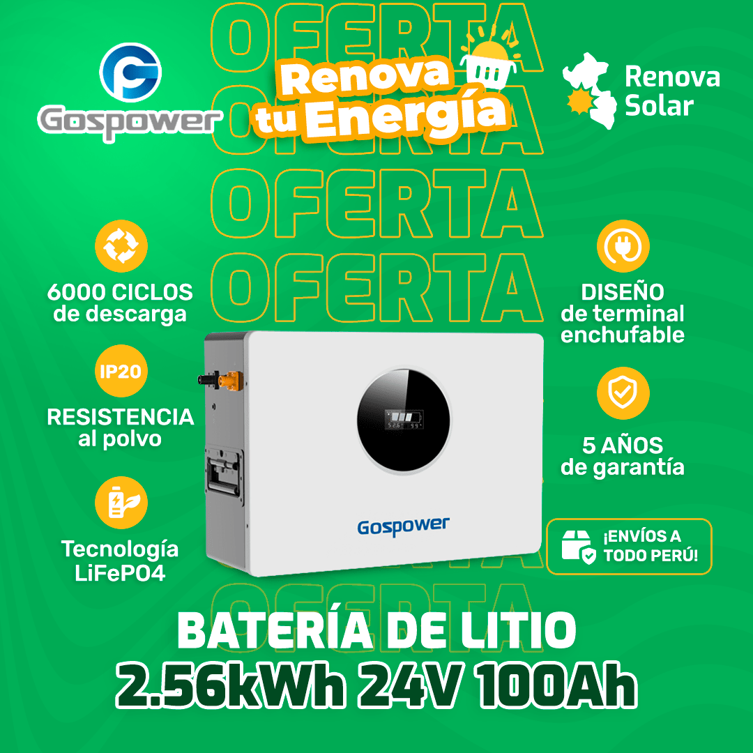Batería de Litio 100AH 24V de pared Gospower GPLB-24100M cuenta con un diseño enchufable que facilita su instalación. Almacena hasta 40,96 kWh de energía con un máximo de 16 unidades conectadas en paralelo, ideal para uso doméstico o en pequeños comercios.