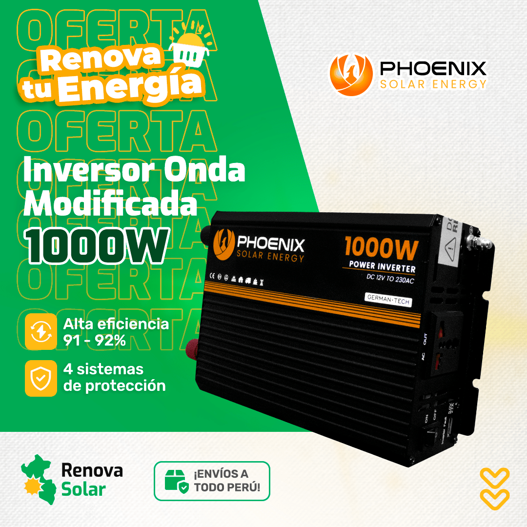 Inversor Onda Modificada 12V 1000W Phoenix Solar Energy te ofrece la energía más confiable para tus dispositivos. Convierte la energía de manera impecable para proteger tus equipos y proporcionar un rendimiento óptimo. La potencia que mereces, ahora en su máxima expresión.